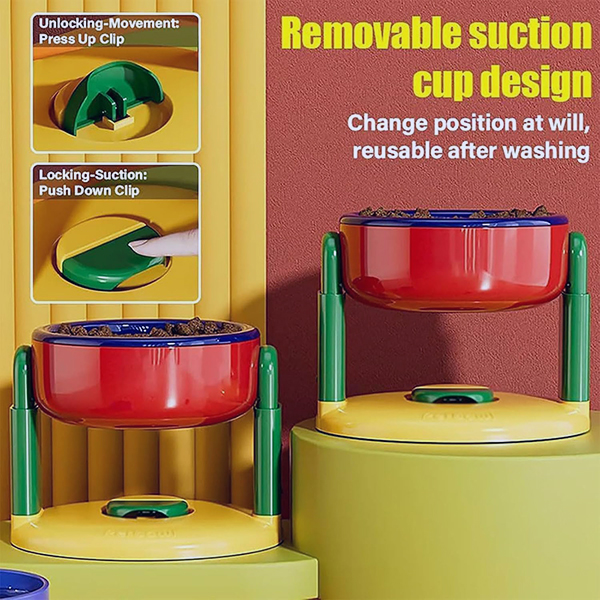 Yüksekliği Ayarlanabilir, Vantuzlu, Kedi-Köpek Mama Kabı – Kırmızı